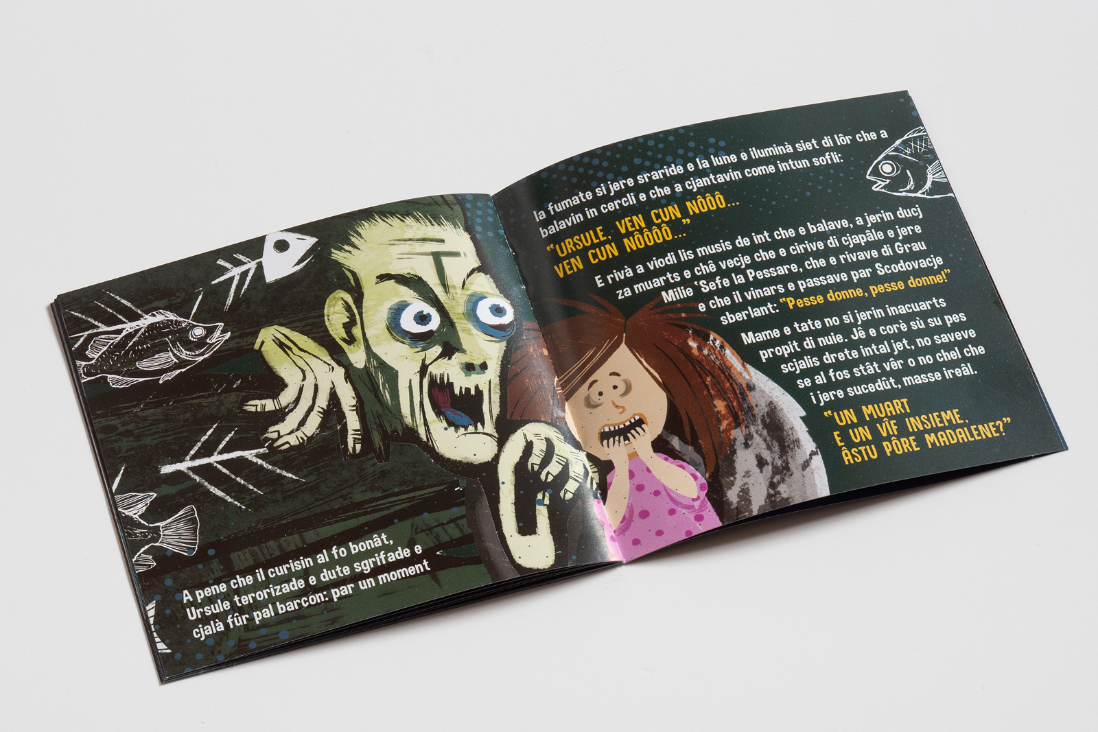 CD musicale in friulano per bambini, contenente una paurosa storia sulla notte di Halloween, corredato di libretto illustrato di 24 pagine. I testi e le illustrazioni del libretto accompagnano l'ascolto, aiutando la fantasia a ricreare l'atmosfera della notte più spaventosa dell'anno. Per imparare il friulano cantando, ballando e... tremando!