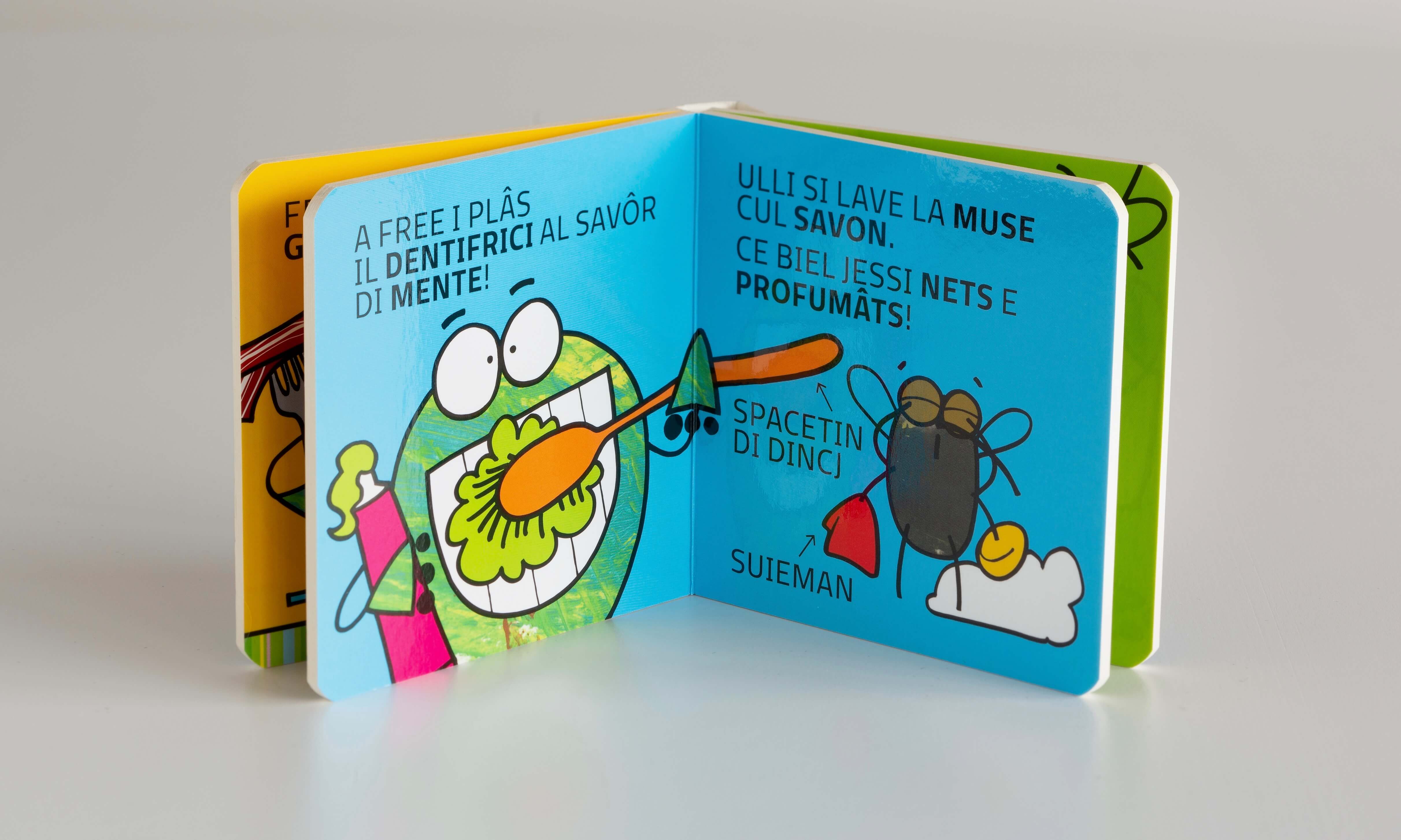 Libretti cartonati per bambini, pensati per imparare il friulano (ma anche l'inglese, il tedesco e lo sloveno) divertendosi. La rana Free e la mosca Ulli guidano il lettore, con una serie di libretti a tema, alla scoperta di come si dice mela in friulano, zucca in inglese, e tanto altro.