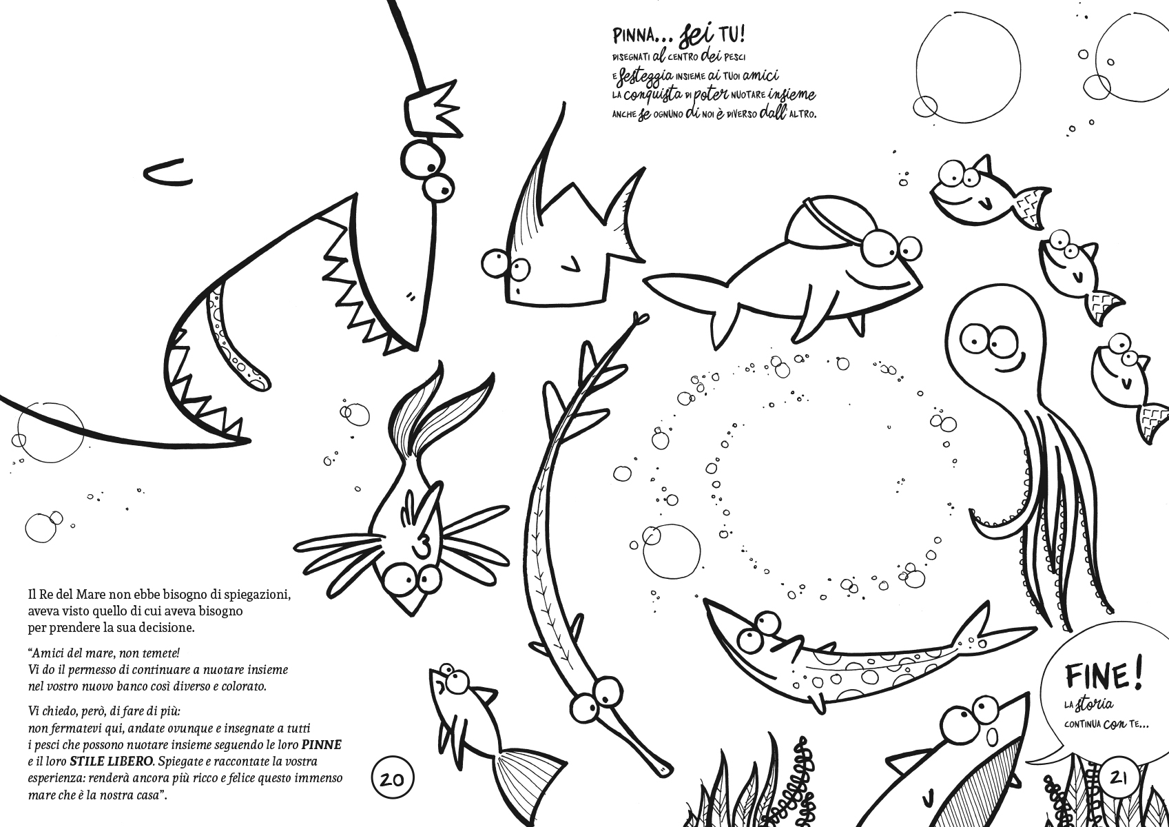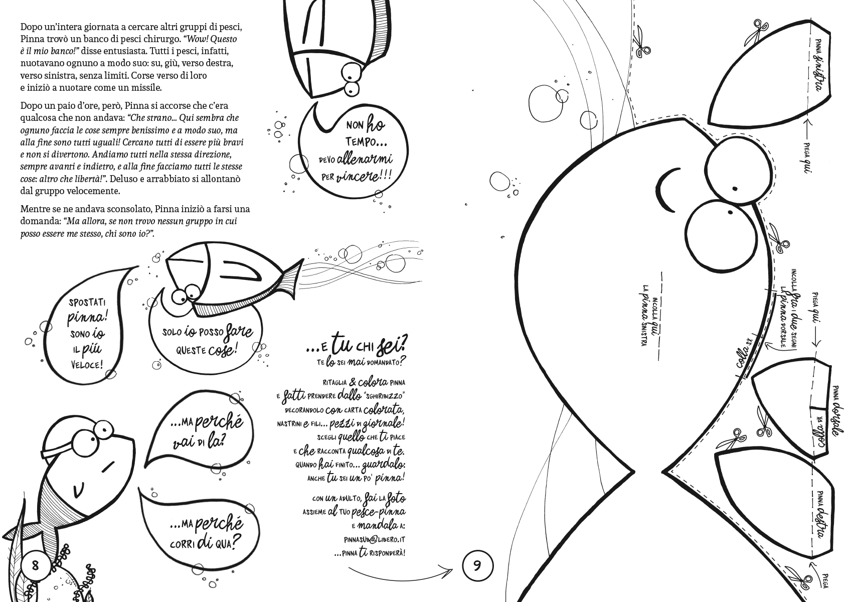 Libretto da colorare in cui il simpatico pesciolino Pinna introduce al mondo del nuoto. Avvincenti avventure, inaspettati incontri con bizzarri personaggi e tante cose da fare, mettendo mano, oltre ai colori, anche a colla e forbici.